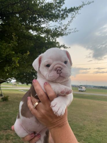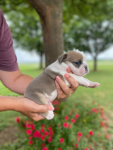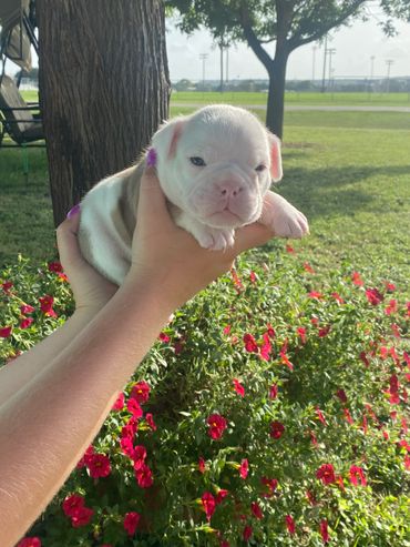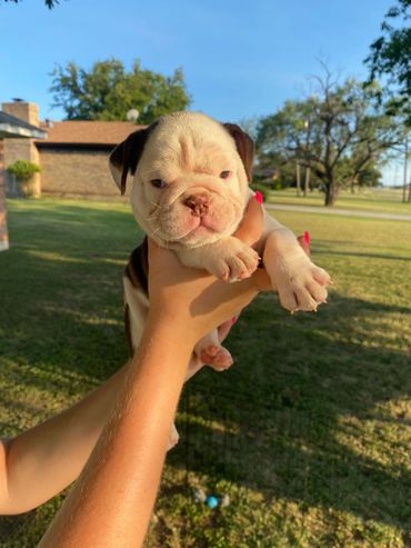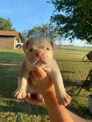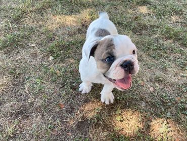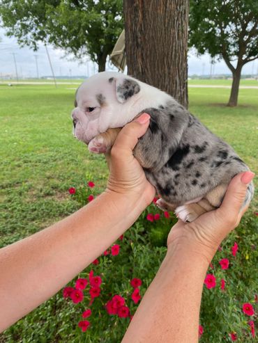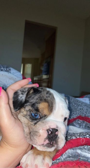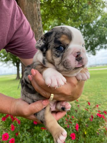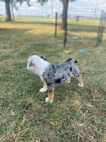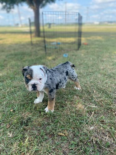 THOR IS A HANDSOME AKC Registered Fawn Ghost Merle Male English Bulldog that is a TRIPLE CARRIER sired by RARE AKC LIL HEATHEN (a Chocolate Merle Male Triple Carrier) X our female STEEL COUNTRIES MATTIE) He has gorgeous color and markings! He has one partial blue eye as he is a MERLE (it is just hidden which makes him the Cryptic or Ghost Merle) so he will throw true Merles with rare color or color carrier females and can throw any color as he is a triple carrier. He has the most sweet and loving disposition along with being super healthy and athletic!