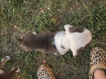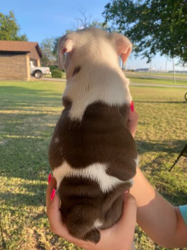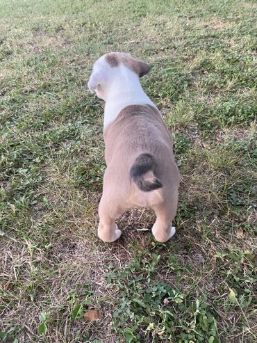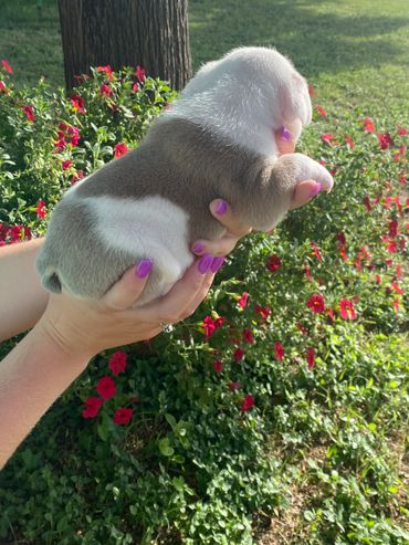 NIX IS A LILAC BRINDLE FEMALE WITH BLUE EYES . SHE IS SIRED BY J BAR T RANCH BODACIOUS CHOCOLATE "BODIE" AND WALKER FAMILY BULLIES "SUGAR". SHE HAS THE SWEETEST DISPOSITION AND HAS A MEDIUM STOCKY - COMPACT BUILD.